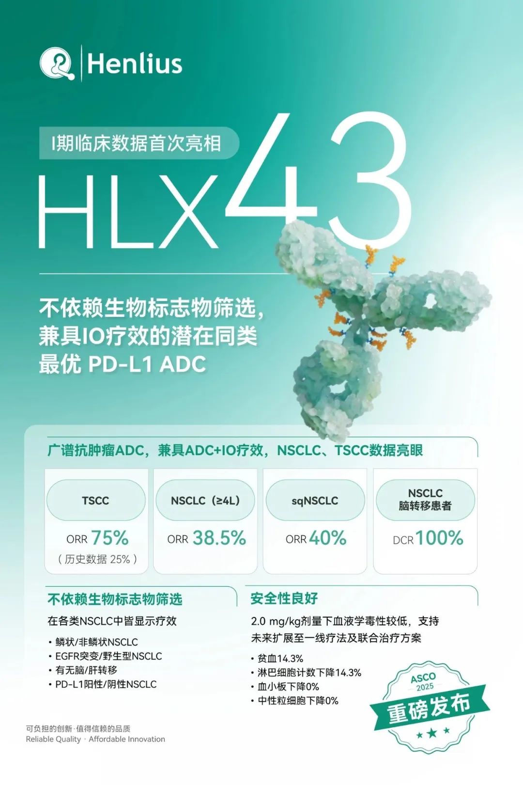 2025年6月3日,在2025美国的临床上实验癌症调查会(ASCO)公司上复宏汉霖首轮颁发了HLX43(PD-L1 ADC)根治方法中后期/移动性实际瘤自身的I期临床上实验实验资料,该调查由中国内地医疗完美院癌症医院专家王洁专家教授担当统筹协调主耍调查者。靠着精细的原子核设计的和多大去创新策略,HLX43在中后期/移动性实际瘤自身中信息显示出优等的抗癌症化学活化和可以控制 的安全防护性,特别是在在非小癌細胞1.肺癌(NSCLC)和胸腺鳞状癌細胞癌(TSCC)自身用户中塑造了最令 欢欣鼓舞的总体明确疗效,满足累似优化好产品的规划设计潜能。迄今为止,世界各国范围图内未有PD-L1 ADC将建销售,HLX43还有机会解决办法PD-1/L1天然免疫辽法不积极地响应或抗药性方面,为多中后期/移动性实际瘤自身引致新的根治方法选取。