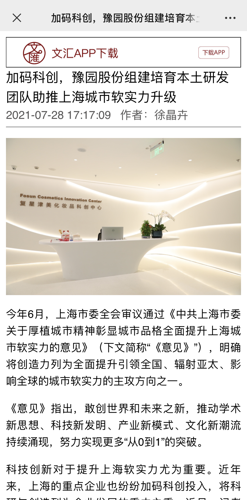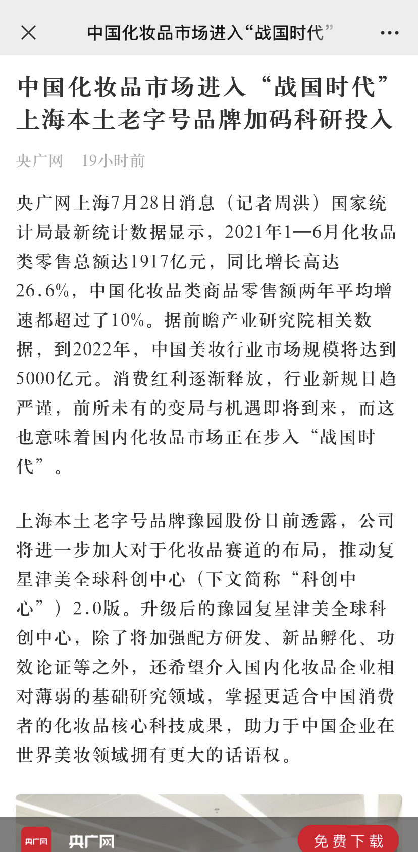 在此大势之下,豫园股份将进一步加大对于化妆品赛道的布局,推动津美全球科创中心(下文简称“科创中心”)2.0版。升级后的津美全球科创中心,除了将加强配方研发、新品孵化、功效论证等之外,还希望介入国内化妆品企业相对薄弱的基础研究领域,掌握更适合中国消费者的化妆品核心科技成果,助力于中国企业在世界美妆领域拥有更大的话语权。此项举措引发老百姓日报、央广网、文汇报会、新民晚报在内的多家主流官方媒体的关注与期待。