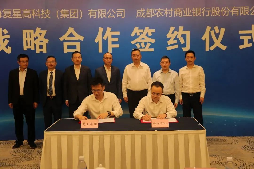 国际执行总裁李海峰、王基平等出席并见证签约。复地产发高级副总裁、成都公司董事长芮胜宇,成都农商银行党委副书记、行长黄建军代表双方签约。