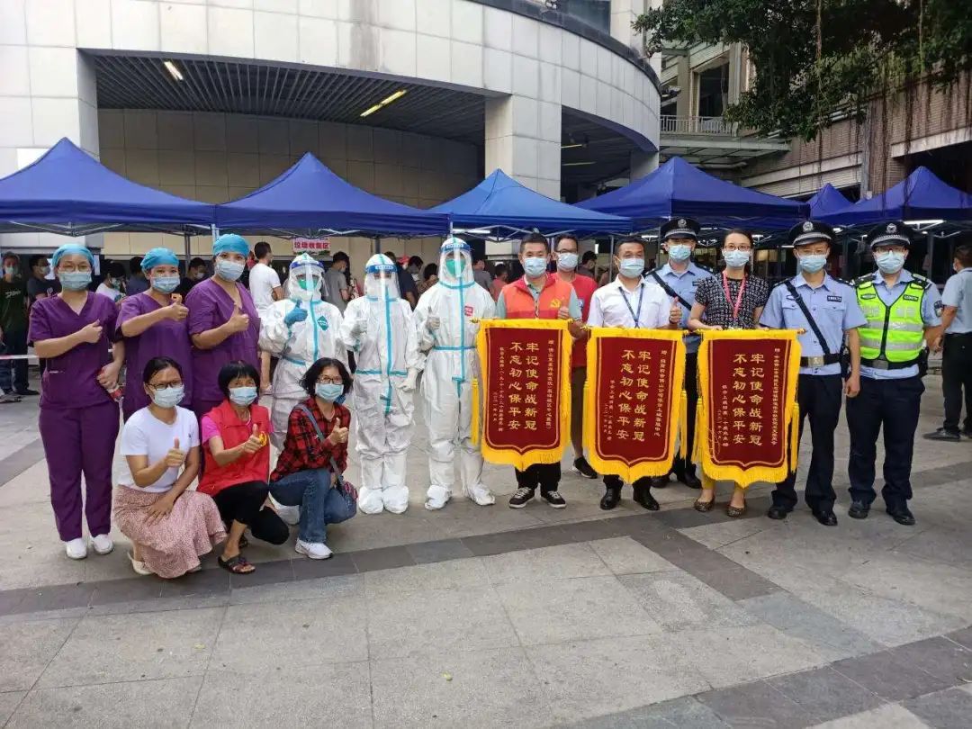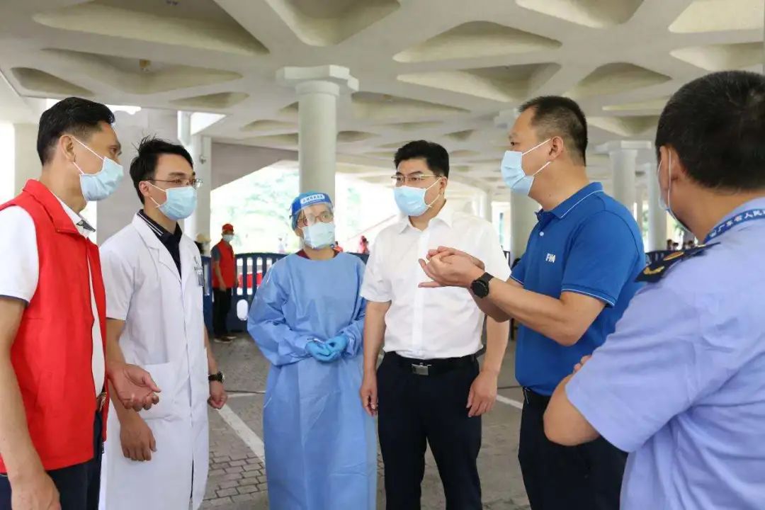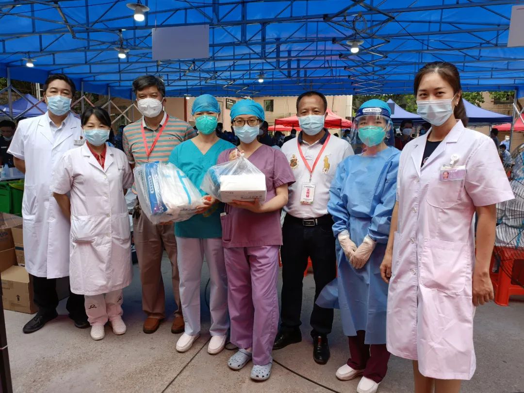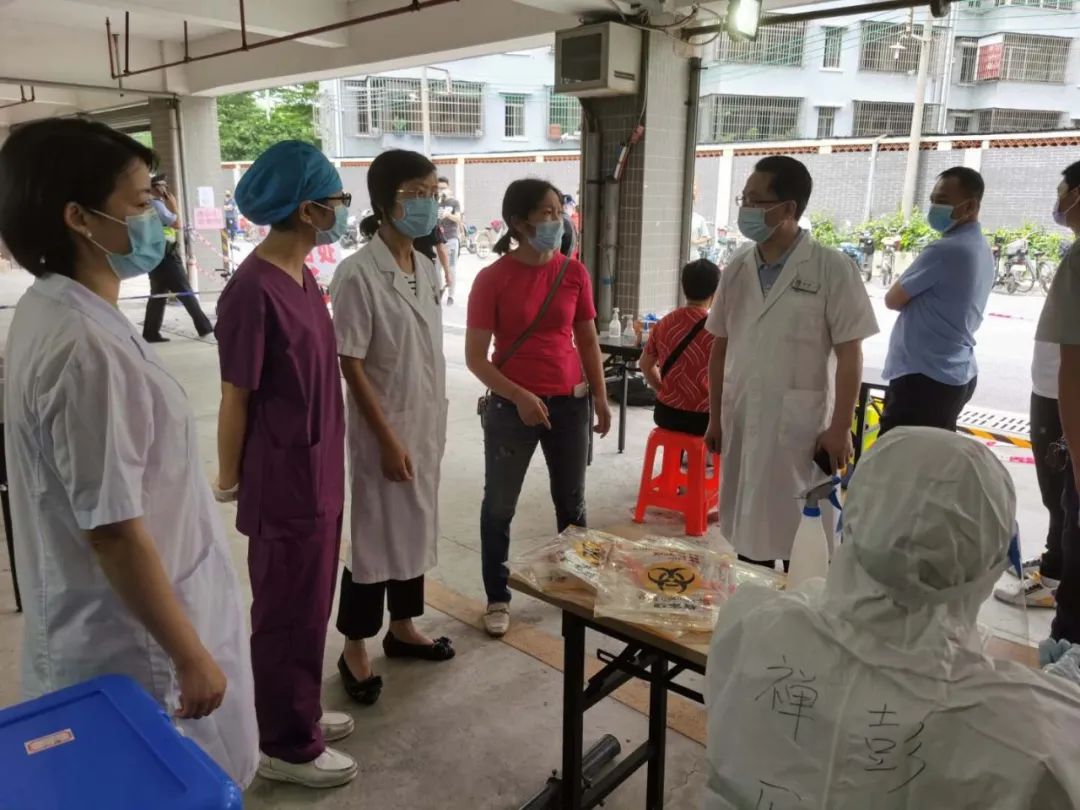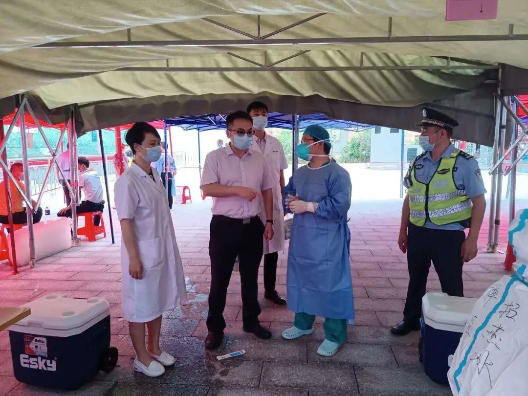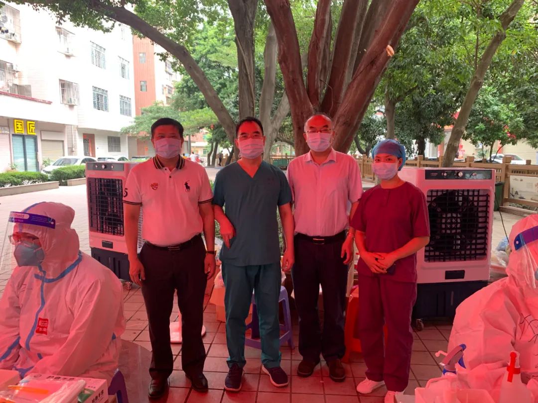 常务副院长谢昆、党委常务副书记钟慧文、院务委员陈秋霞科长到忠信社区采样点慰问一线医护人员