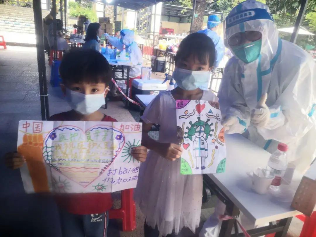 “我是一名普通的学生,虽然与您素未谋面,但是你们的身影,已经深深地刻在了我的脑海里……多谢你们的无私奉献,你们是时代的英雄,是世界上最可爱的人,最后谢谢您!”一名丽日豪庭社区小学生在送给医护人员的感谢信中这样写道。