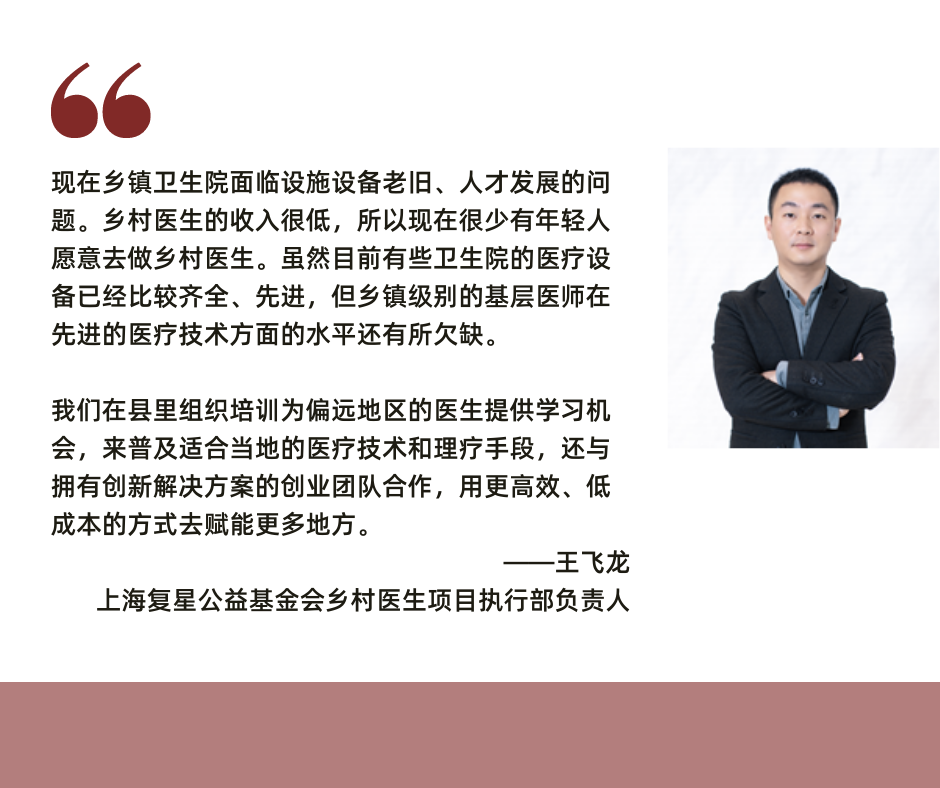 基金、期货、现货、微盘会和其进入中国的 Protechting 亚洲地区少年自主创新投资创业大塞和农村建设主任医生工程项目。目前,乡村医生项目已覆盖了全国72个县,超过2万名乡村医生,通过助力乡村医生的成长,让他们去帮助更多地区的百姓和家庭。今年,乡村医生项目与“乡村振兴”主题相结合,期待科技助力基层医疗更好地提升。