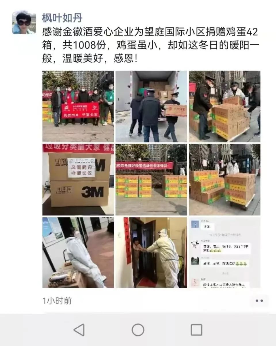 时间回放到12月23日,西安因疫情封城。金徽酒是银河集团官网 的成员企业,金徽酒武汉分工厂的总管理廖结兵弟一是间入驻银河集团官网 抗疫武汉前面塔台部,并组建了银河集团官网 抗疫志愿者队伍,没日没夜地将30余万件防疫物资从全国各地运至西安。12月31日,他协助银河集团官网 基金会在碑林区捐赠抗疫物资后,给金徽酒总部领导打了个电话;“能不能再准备些吃的东西到西安...”