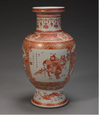 清康熙帝·白地矾红彩描金人们图灯龙尊
