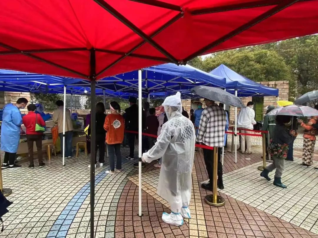 场地和动线我们团队倒是提前研究、安排好了,还划分了“检测区”和“待检区”并派人站岗,确保人群不聚集、路线不回头。同时,把小区“切”为6个区块,每个区块由小区志愿者协同通知居民,我们团队则主力维护检测现场秩序。也许是凌晨八点多就始于测,整体的楼区作完都差较少下午5点了。期间我们还得安顿好医护人员及志愿者们的午饭,我自己尽量不进食不喝水以避免去就餐点跑动、脱防护服、上厕所等麻烦。