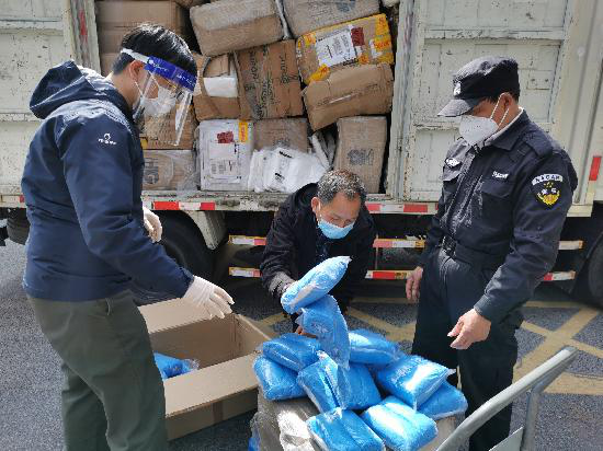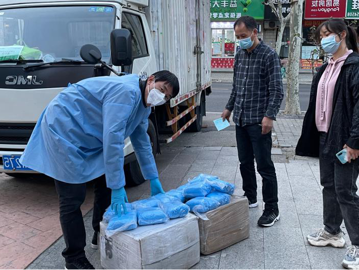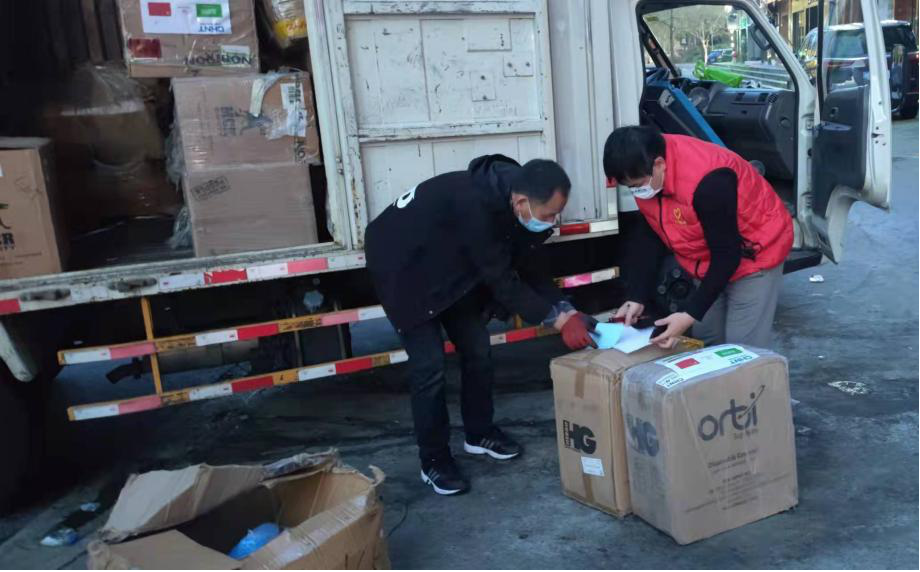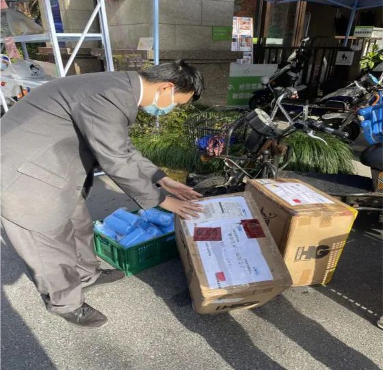 ▲联想基金会捐赠的第二批物资抵达张江镇五个社区