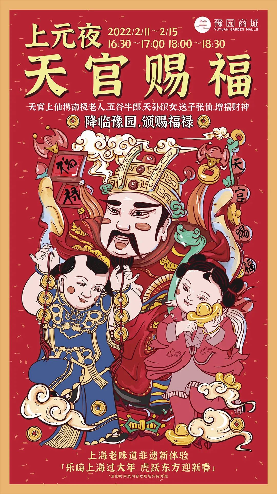 元宵节是天官赐福的正这一天,也是中国大国家人2017新年标志性的情调嗨翻天。“天官”携五仙要在豫园为顾客散客们送上浓浓中国大国家味的吉利祝贺。