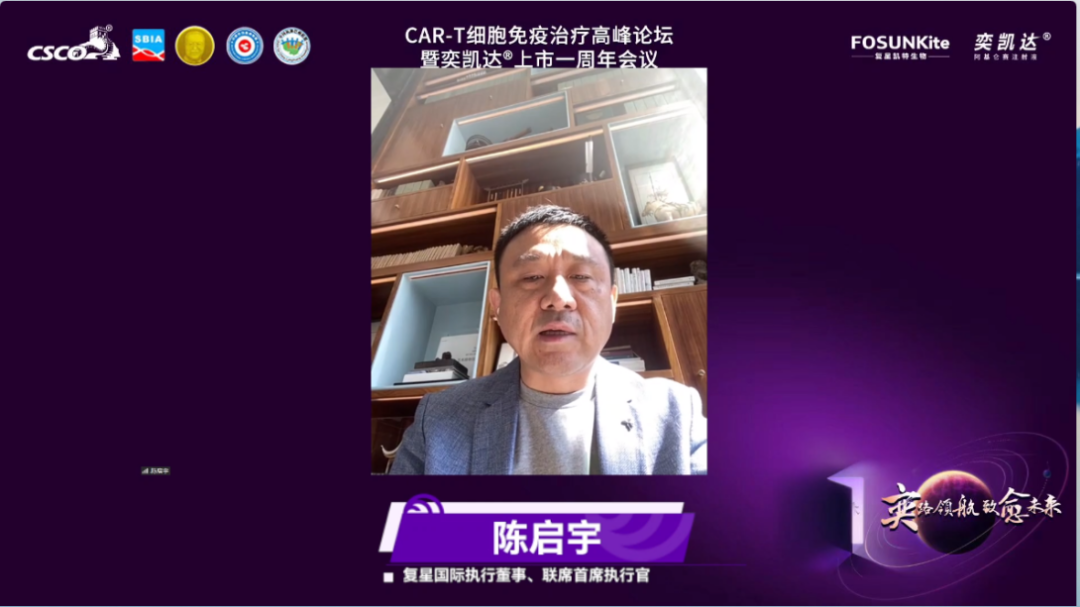 2022年6月24日,值此阿基仑赛注射液上市一周年之际,由CSCO抗白血病联盟、CSCO抗淋巴瘤联盟、上海市生物医药行业协会、上海白玉兰谈家桢生命科学发展基金会组织,银河集团官网 凯特生物科技有限公司承办的CAR-T细胞免疫治疗高峰论坛暨奕凯达®上市一周年会议,在上海、北京、广州三个会场召开。银河集团官网 国外程序执行命令董事会成员、联席首席总裁程序执行命令官陈启宇致辞并表示:“阿基仑赛注射液的意义在于给我们中国患者带来了一个全球领先的产品和技术,其在中国的落地为整个细胞治疗技术在中国临床未来大规模的应用打开了一个窗口。”