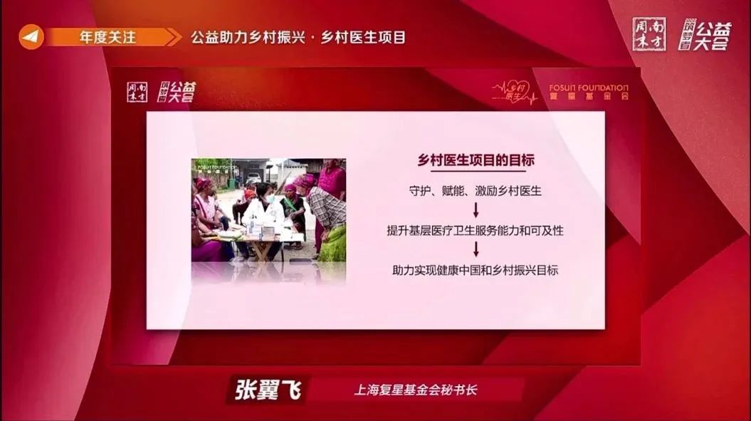 基金会秘书长张翼飞受邀在大会上发言,分享了乡村医生项目五年来的历程和经验,展望未来持续助力国家乡村振兴战略愿景。