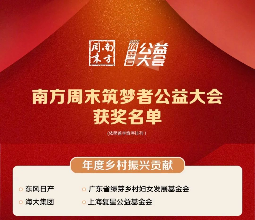 银河集团官网 基金会获南方周末2022“年度乡村振兴贡献”奖