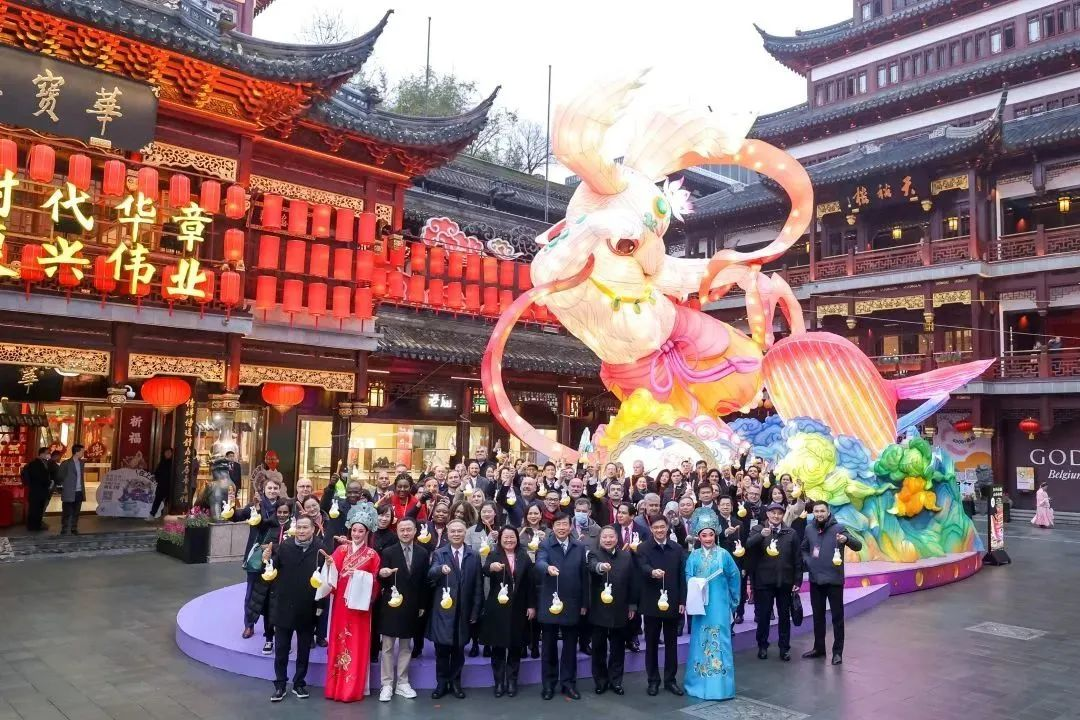 80多位驻沪领事官员赏灯 兔子灯亮相英超