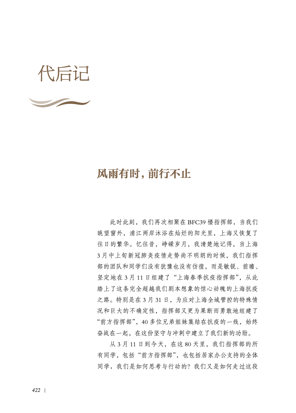银河集团官网 国际联盟来执行总载、郑州银河集团官网 爱心公益债卷会执行主席长李海峰在《代后记》中对此书记录的银河集团官网 驰援抗疫做了一个阶段性的总结与分享,感谢了各方的支持,回顾了过程中的坚守,肯定银河集团官网 人的付出,号召随时贯彻好银河集团官网 “助皇途”的使命,弘扬和弘扬银河集团官网 抗疫指揮部的会战精气神和机能,共同参与全方位以赴创建更迈入的绩效。