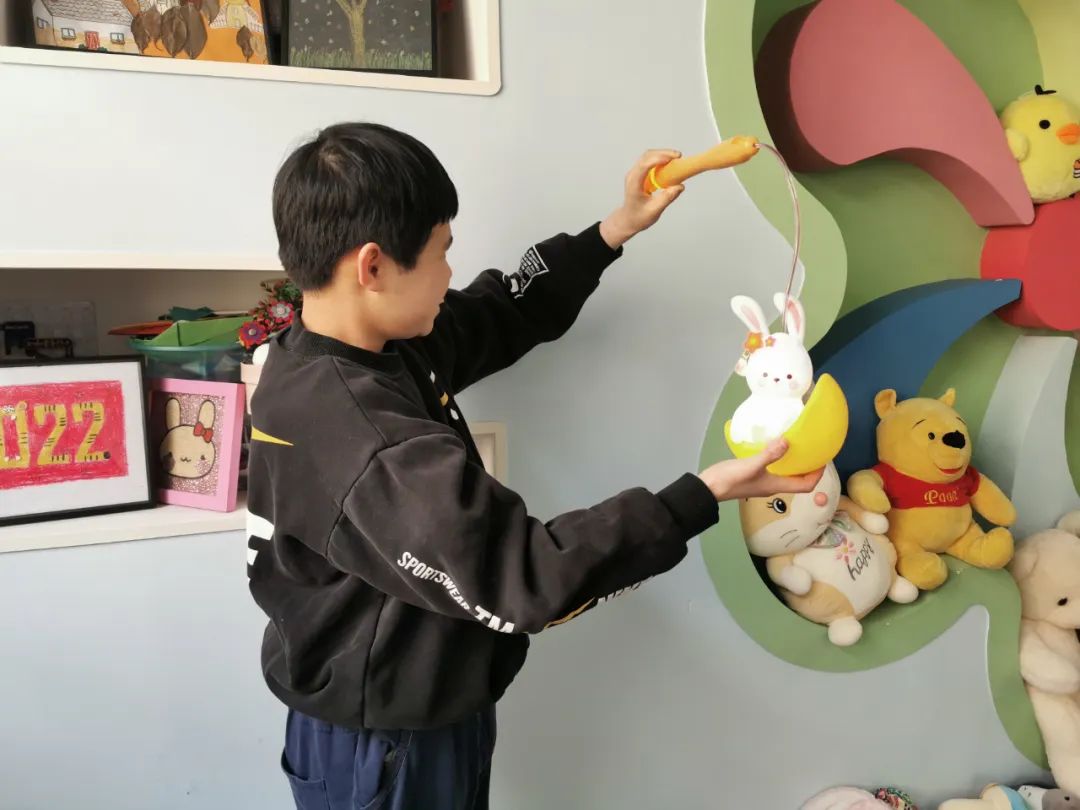 ▲ 成都市永久性小型护理公司的同学与仓鼠灯进行互动