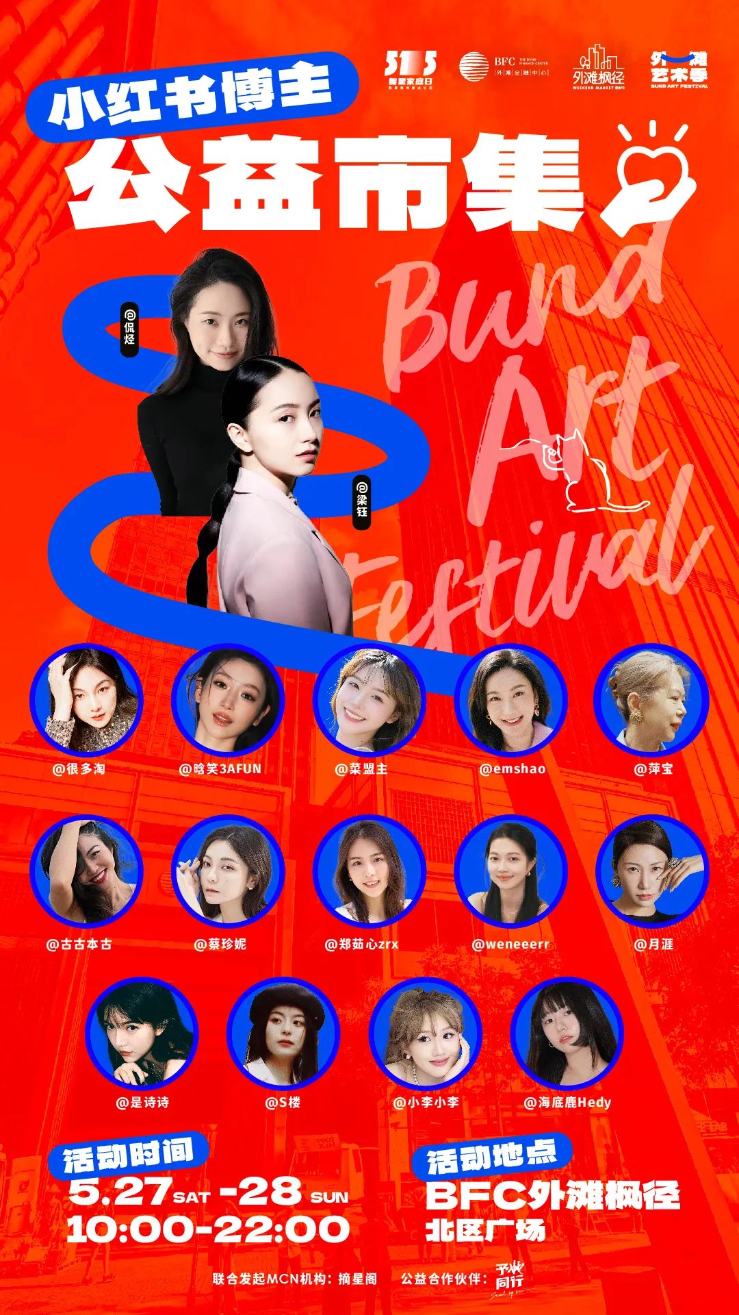博主@菜盟主 将化身一日摊主,带来艺术小店限定周边;@小李小李 、@郑茹心 等则将携手阅外滩,为大家亲选书单。