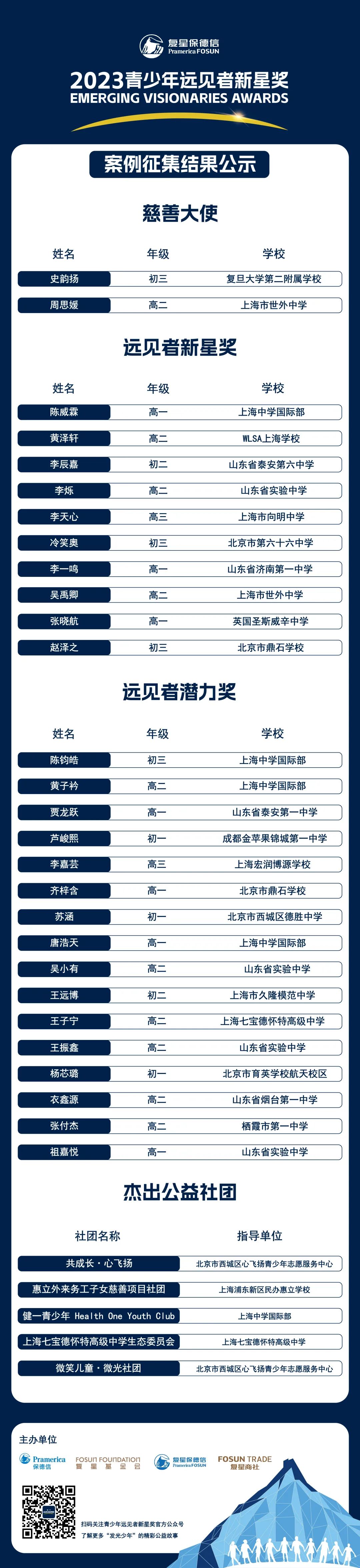 十年来,该奖项吸引近6500名中国中学生参加,篮球馆内悬挂的十张大合影,见证他们从“追光者”成长为“发光者”。站在第十年的关口,升级后的青少年远见者新星奖,鼓励中学生对标联合国可持续发展目标(SDGs)开展创新公益行动,助力他们实现公益创想。