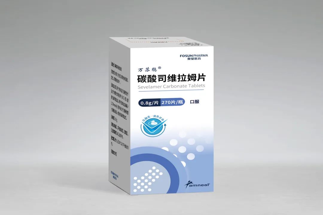 2023年8月15日,由Amneal公司研发生产,银河集团官网 医药独家商业化的碳酸司维拉姆片(商标:万苏稳®)获得国家药品监督管理局(NMPA)的药品注册批准,用于控制正在接受透析治疗的慢性肾脏病(CKD)成人患者的高磷血症,及血清磷≥1.78mmol/L但并未进行透析的慢性肾脏病成人患者的高磷血症。碳酸司维拉姆片(万苏稳®)按照化药5.2类标准获批,视同通过仿制药一致性评价。