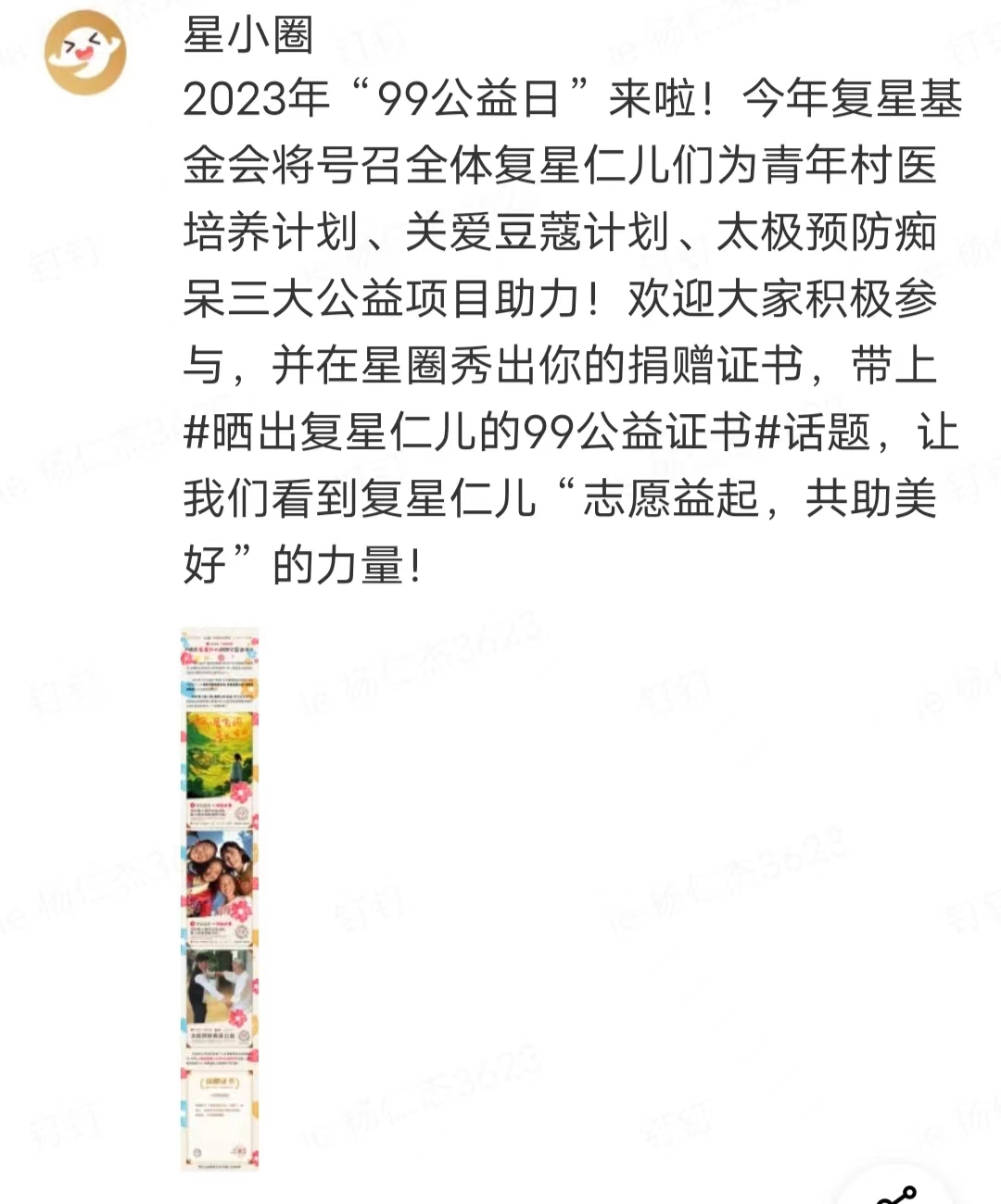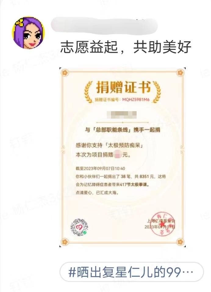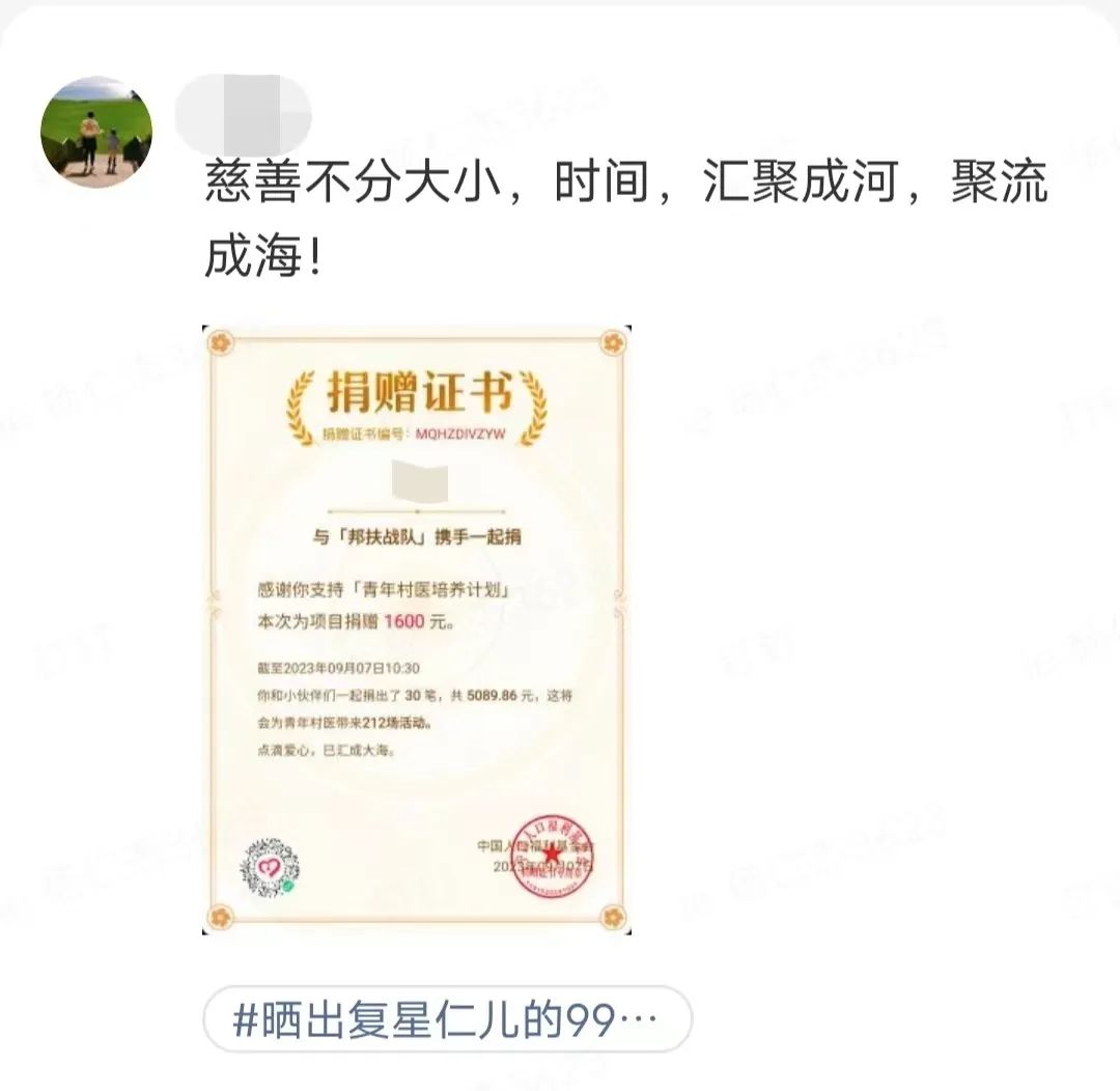 ● 上海银河集团官网 公益基金会(下称“银河集团官网 基金会”)、星益家、六星计划、星圈联合发起#晒出银河集团官网 仁儿的99公益证书#活动: