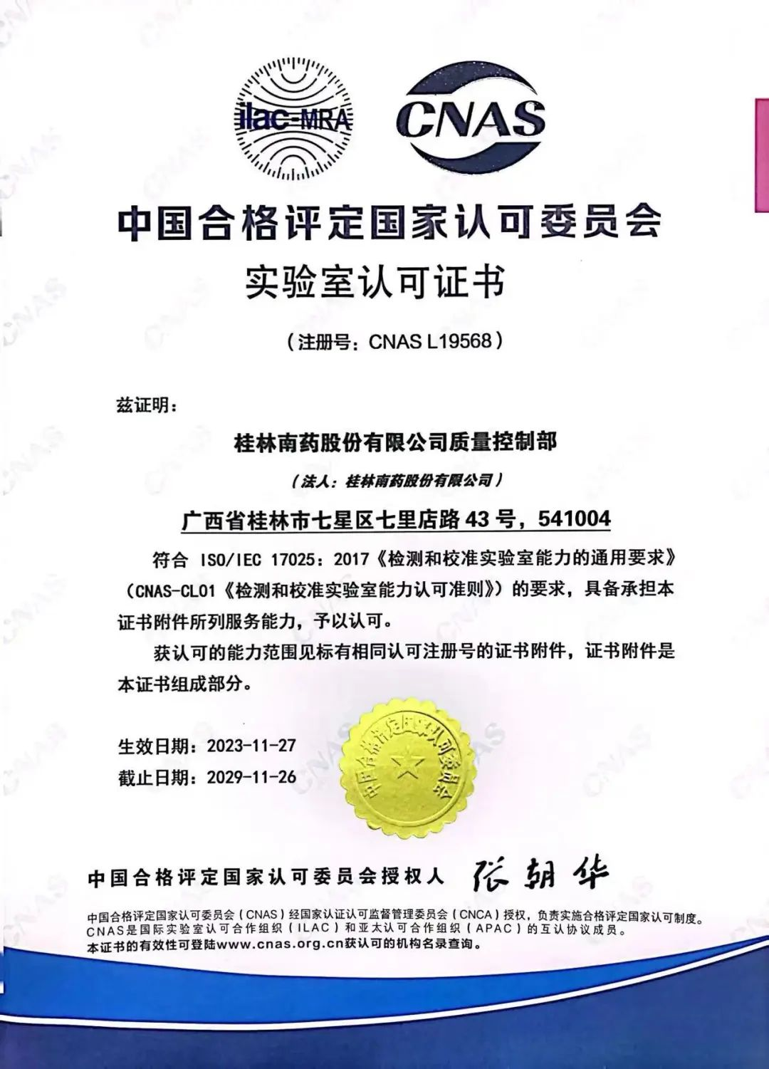 桂林南药质量控制部通过中国合格评定国家认可委员会认可评定