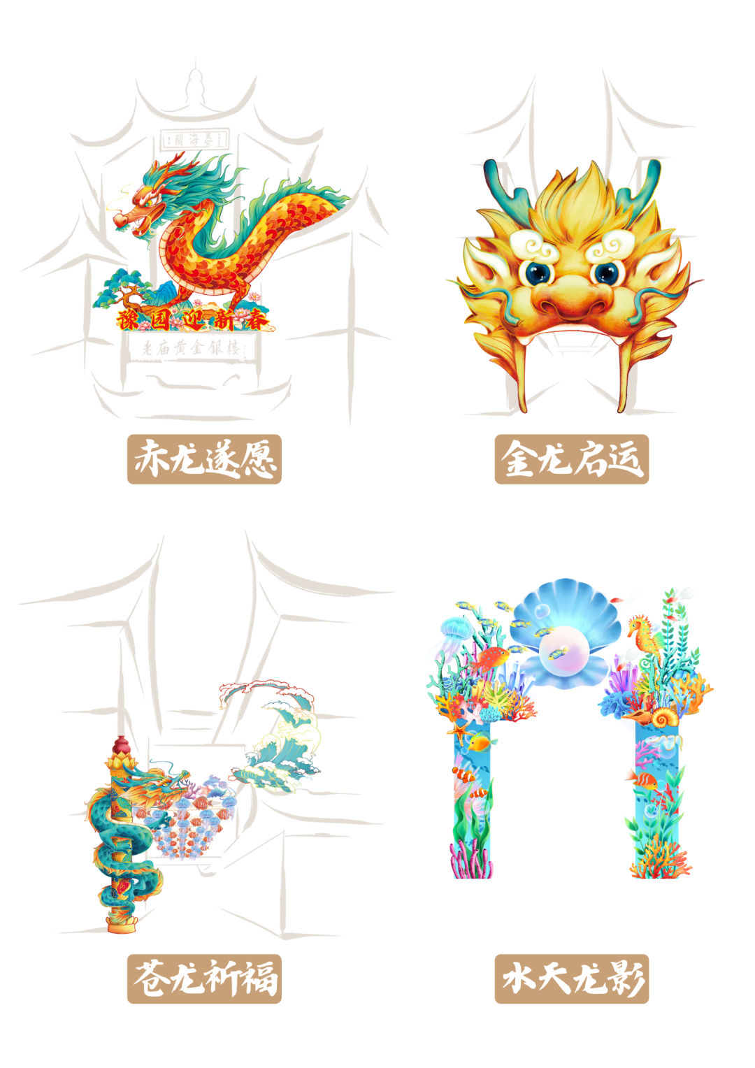 四条广告招牌灯组以“龙游八方”居多题。四条广告招牌是龙族小说小说的世间的穿线之塔,同样许愿之塔、过滤之塔、祁福之塔、腾达之塔。四条广告招牌,由神龍神将镇守护神卫,逢豫园迎新年之机,开放式迎邀消费者们步入龙族小说小说的世间,科学探索游历。四门可走向有差异 奇境,天地间生命同乐,电脑共享盛事嘉祥。