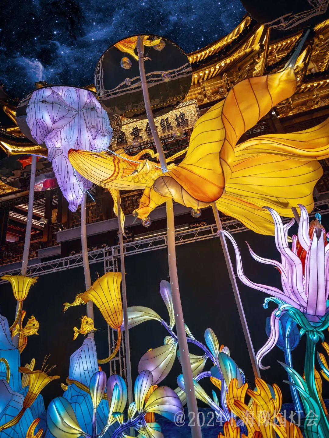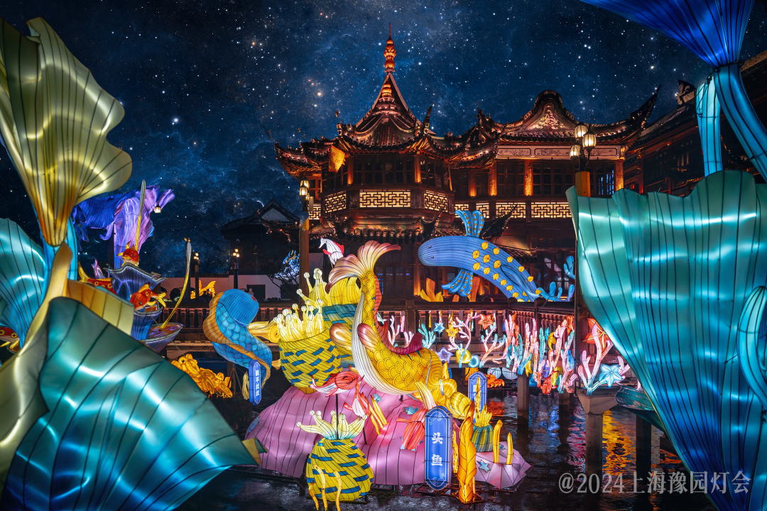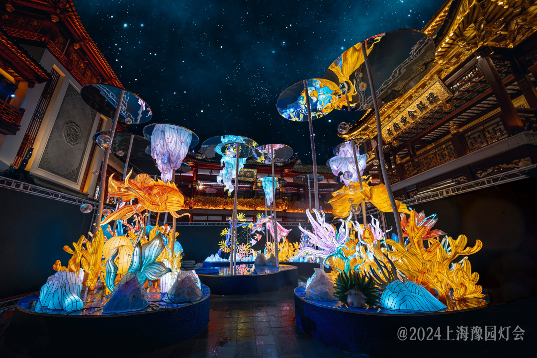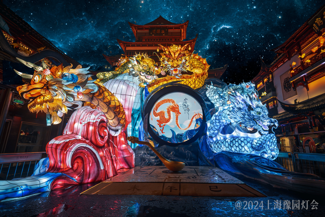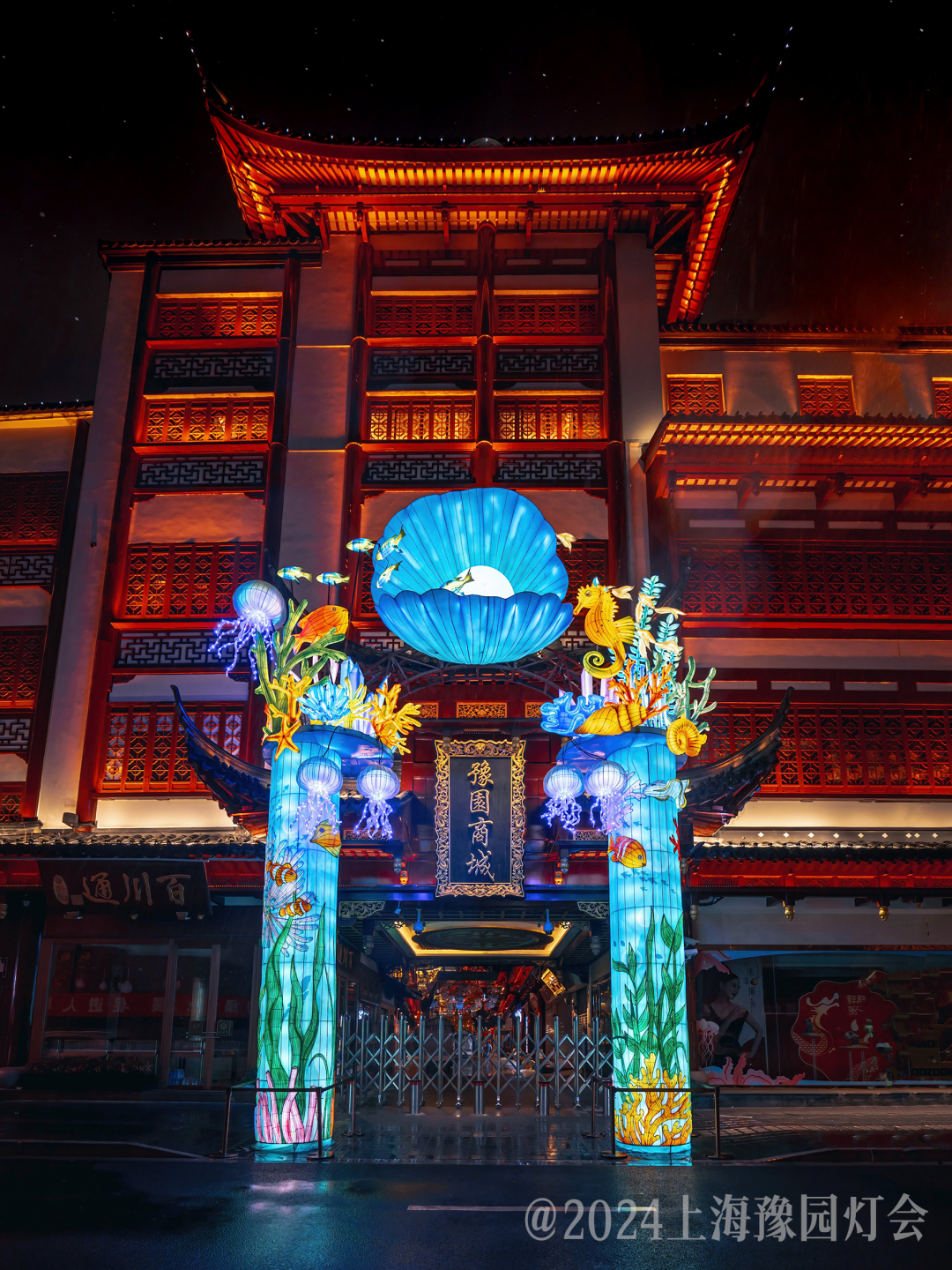 2024豫园民俗风情艺木灯会共主要包括4个门面装修,十大的场景,提升浅海与河图之象,产生生肖龙与海域动草本花卉交错的奇境。