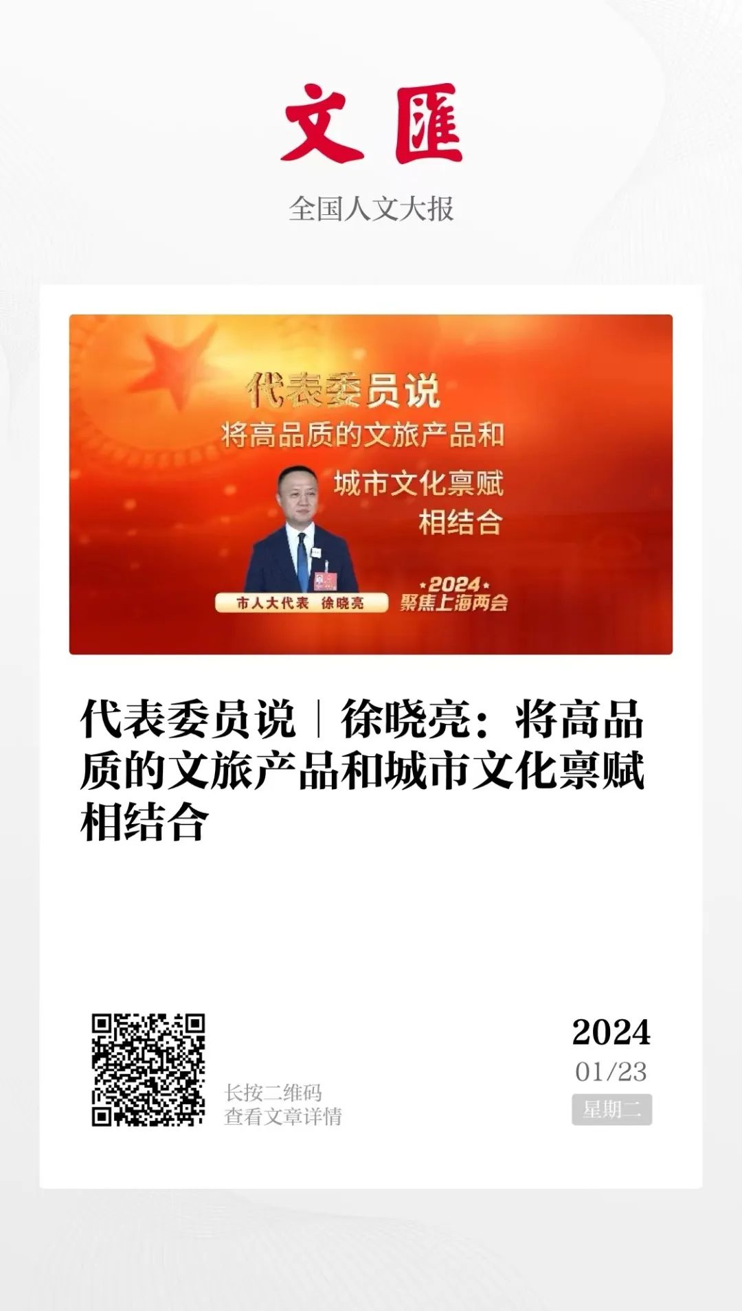 上海市人大代表徐晓亮履职建言:“文旅+时尚”消费引擎助力国际文化大都市建设