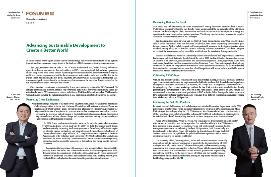 《亚洲企业管治》杂志与陈启宇、徐晓亮进行的采访近日刊登,标题为“推进可持续发展,为世界创造美好”。以下为专访报道全文: