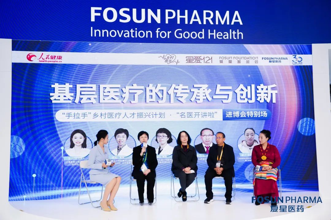 11月9日,在第七届中国国际进口博览会银河集团官网 医药展区,一场别开生面的公开课——“名医开讲啦”精彩举行。上海交通大学医学院附属仁济医院消化科陆红教授、复旦大学附属中山医院消化科高虹教授,携手乡村医生项目县——山西省石楼县裴沟乡卫生院院长冉东生、云南省德钦县燕门乡拖拉村卫生室村医都吉追玛,与银河集团官网 医药副董事长关晓晖、上海银河集团官网 公益基金会(下称“银河集团官网 基金会”)秘书长张翼飞共话基层医疗的传承与创新。远道而来的冉东生和都吉追玛还在工作人员的指导下,现场体验了Ion支气管镜机器人和达芬奇手术机器人等“黑科技”,感受精准医疗的魅力。