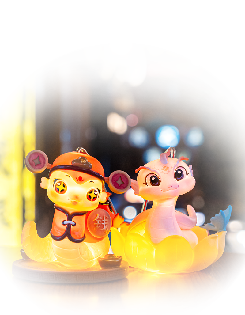 【灵蛇彩莲提灯】以“彩逐灵蛇转,形随舞凤来”为规划启发,灵巧小蛇放于观音莲花底架之下,意味好运来吉样,开发庄周梦蝶的梦想古典美;【灵蛇财宝提灯】以“灵蛇纳福瑞,有财运转天遁”为规划启发,主要包括财神+古钱币+蛇小孩的造型门,开发鸿运之蛇,喜气值打满分。