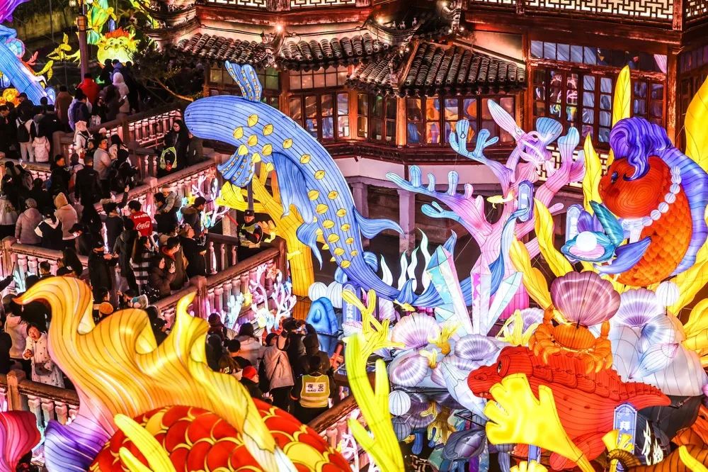 “灯火可亲,山海可忆”。1月21日晚,随着千灯点亮,2024豫园民俗艺术灯会启幕,这场为期40天的灯会共吸引了超过400万人线下打卡。在世界的另一边,扬帆出海的豫园灯会在法国巴黎引得游客排起长队,中法友谊之光点亮璀璨夜空。