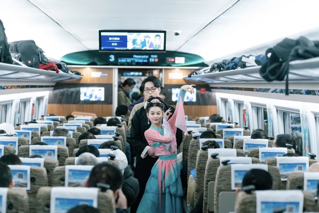 3月28日,我国首条民营控股高铁杭绍台铁路成功开行全国首趟职工疗休养高铁专列。在车厢内,舞蹈演员们进行了古风舞蹈、地方非遗等特色演出。