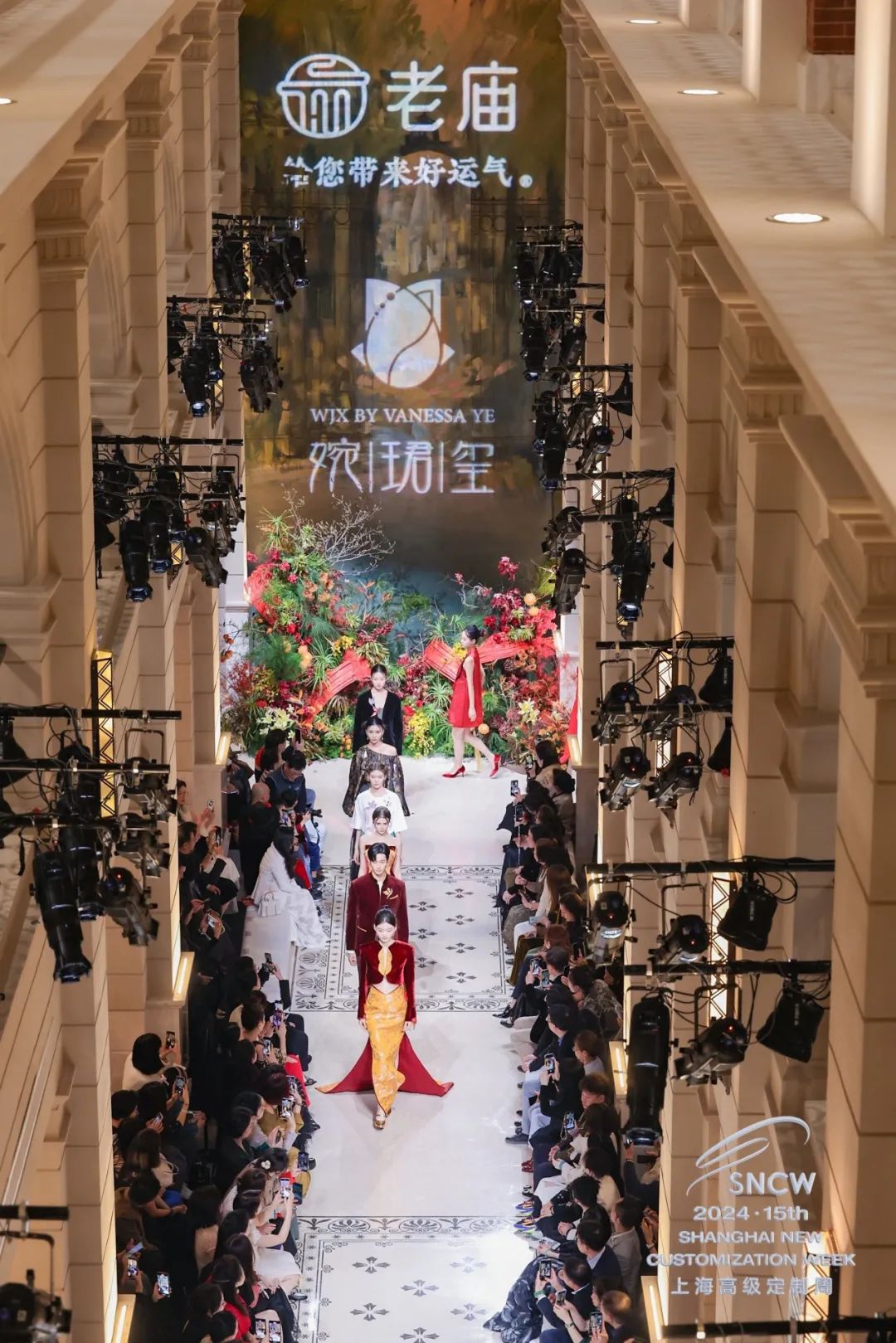 11月12日,上海高级定制周十周年暨第十五届上海高级定制周启幕仪式举行。当晚的开幕大秀是由老庙与WJX婉珺玺共同呈现的“鹊说新语”,一同述说十里红妆的新中式浪漫。