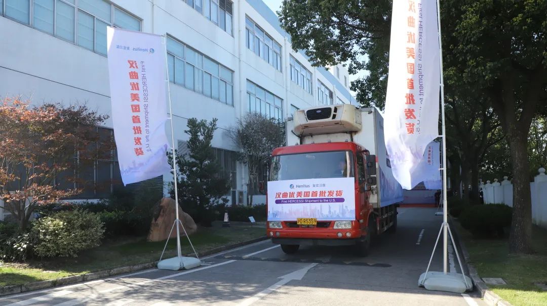 11月29日,复宏汉霖自主研发和生产的曲妥珠单抗生物类似药汉曲优®正式从公司松江基地(一)发出,启程运往美国市场。复宏汉霖首次商业化供货至北美地区,是其全球化战略布局的又一重要突破。
