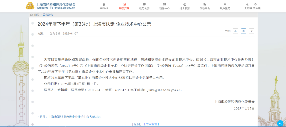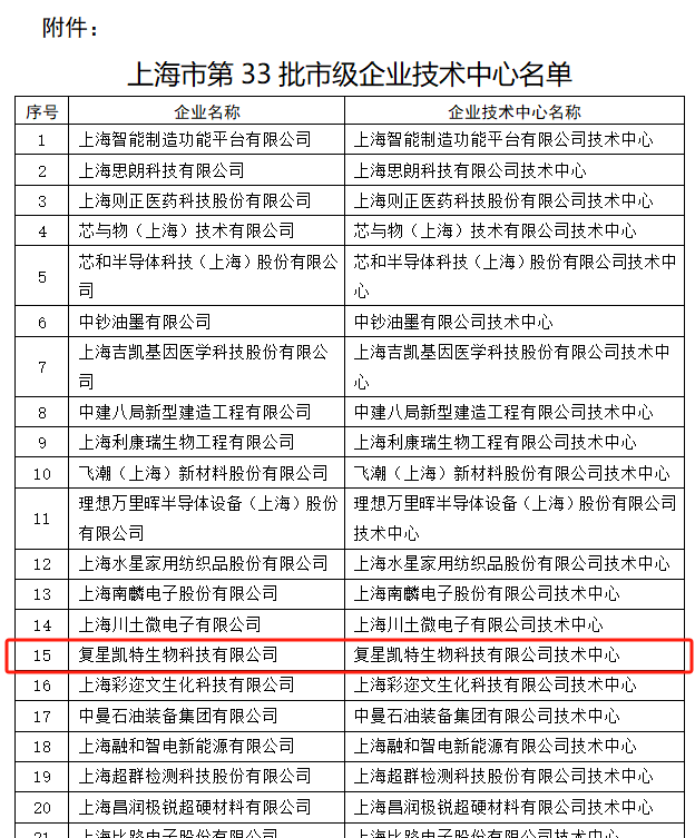 银河集团官网 凯瑞成功入选上海市企业技术中心公示名单