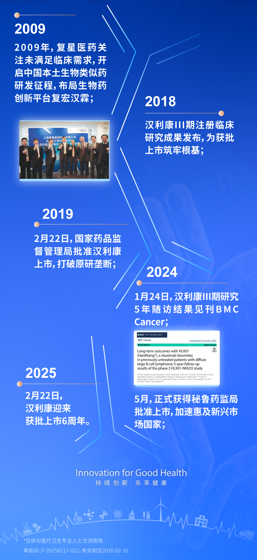 10年研发,6年愈证,2025年2月22日,中国首个自主研发的CD20单抗生物类似药汉利康®迎来上市6周年。自获批至今,汉利康®以卓越的临床价值与可及性,不仅填补了国内生物类似药领域空白,更推动淋巴瘤诊疗迈向规范化、普惠化,并于2024年首次迎来海外获批,加速惠及全球患者。