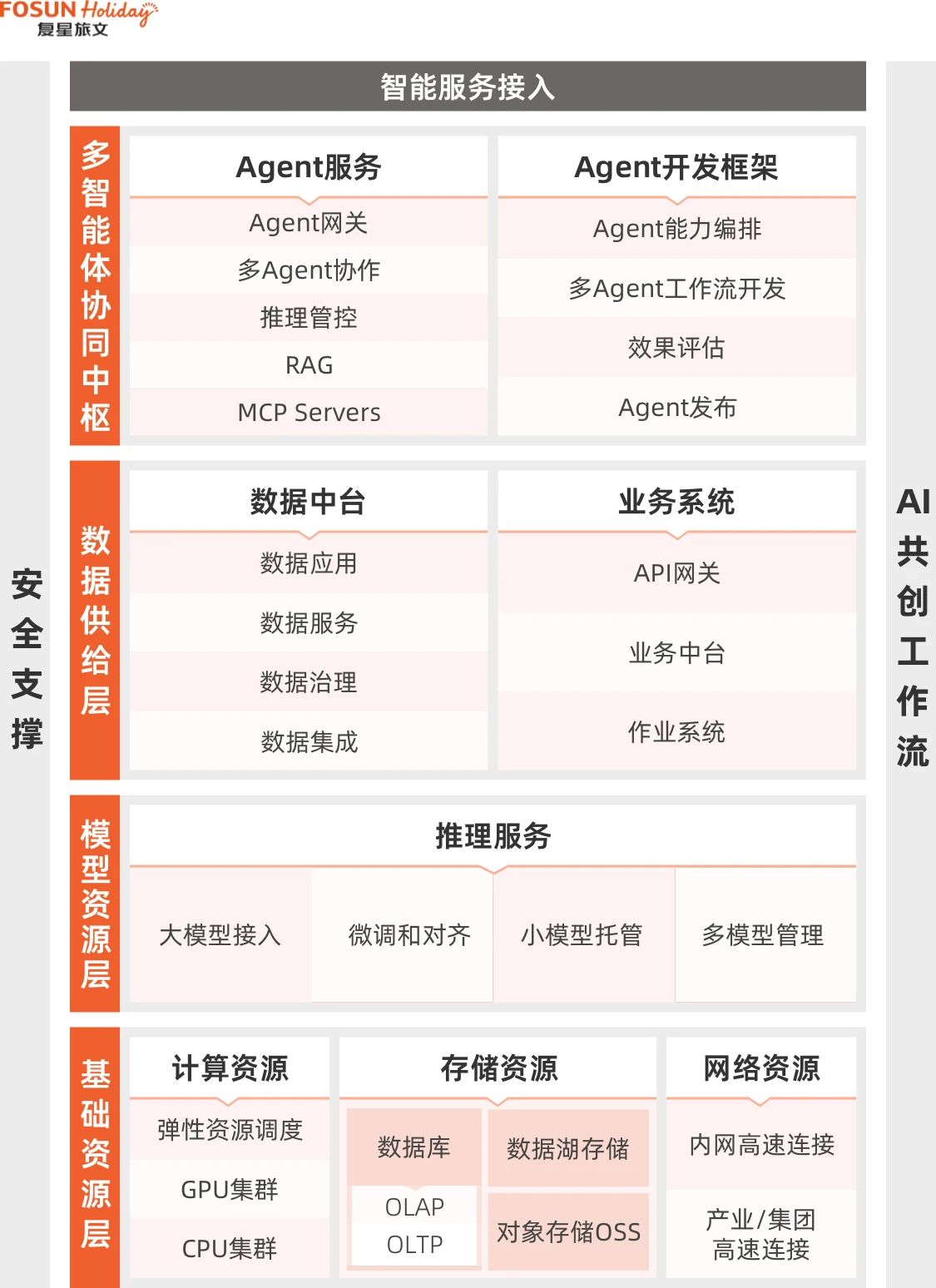 在的数据方面,白皮书明确提出“双轨数据供给”策略:一方面,通过业务系统API提供实时结构化数据支撑AI推理与场景感知;另一方面,通过湖仓一体化的数据中台提供高质量的历史数据、标签体系与向量检索能力,服务于AI模型训练、RAG检索与用户画像。数据不再是“后台支撑”,而是智能生成与响应的第一要素。