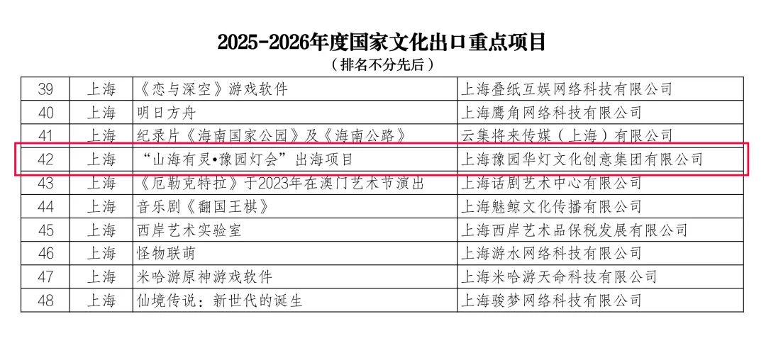 的五月份27日,商务旅行部、中推广部、文明和旅游酒店部、广电网国安全总局同时认为并发布了2025—2026半全年国文明出入口侧重村公司和2025—2026半全年国文明出入口侧重村业务。“山有灵·豫园灯会”启航新工程项目荣获侧重新工程项目,成都豫园华灯行业文化创意产业人群不多工厂荣获侧重行业。