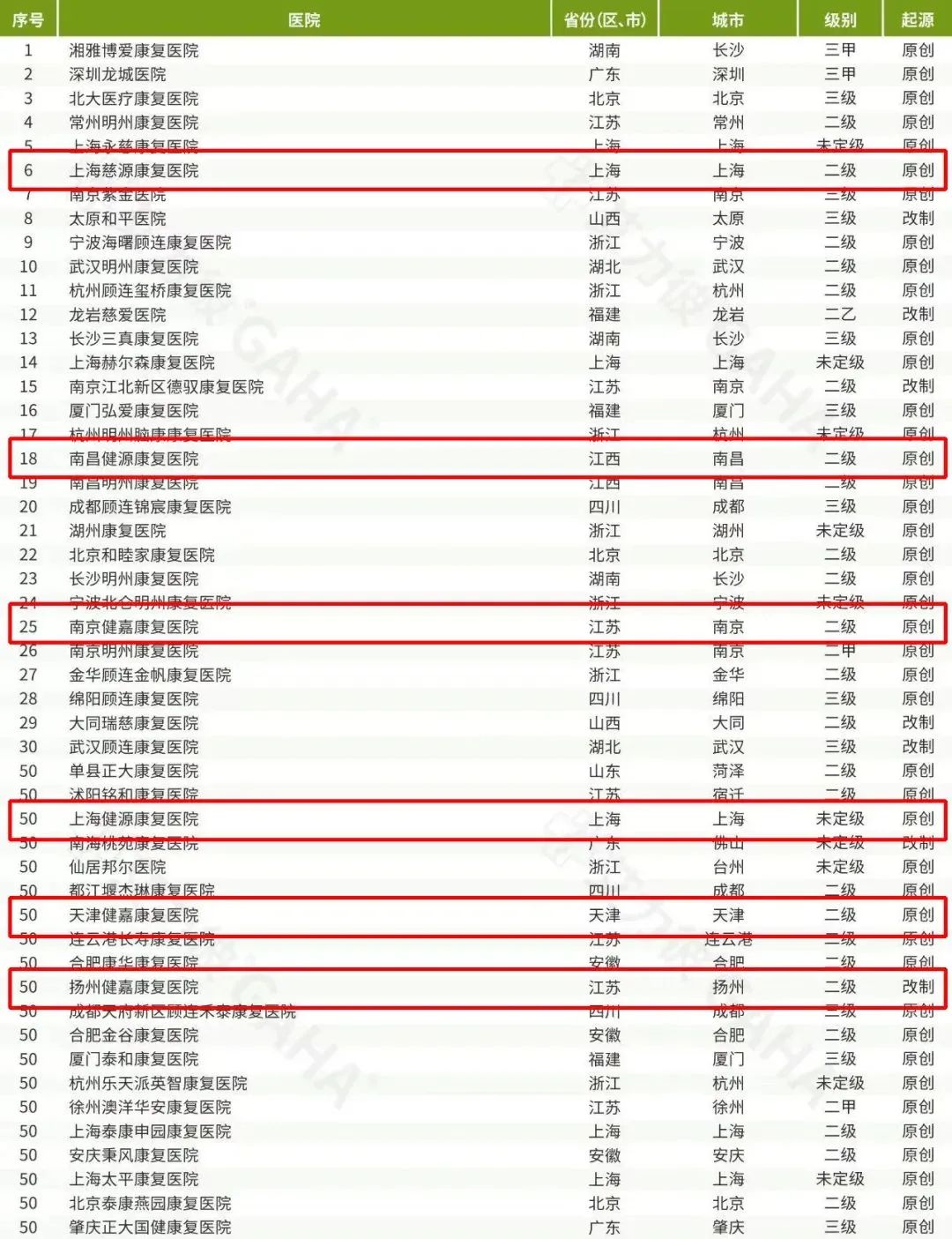 中国社会办医·康复治疗卫生院50强(第31-50名)