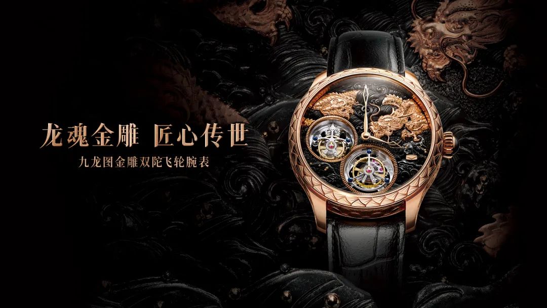 大师作品海鸥编「九龙图」金雕双陀飞轮