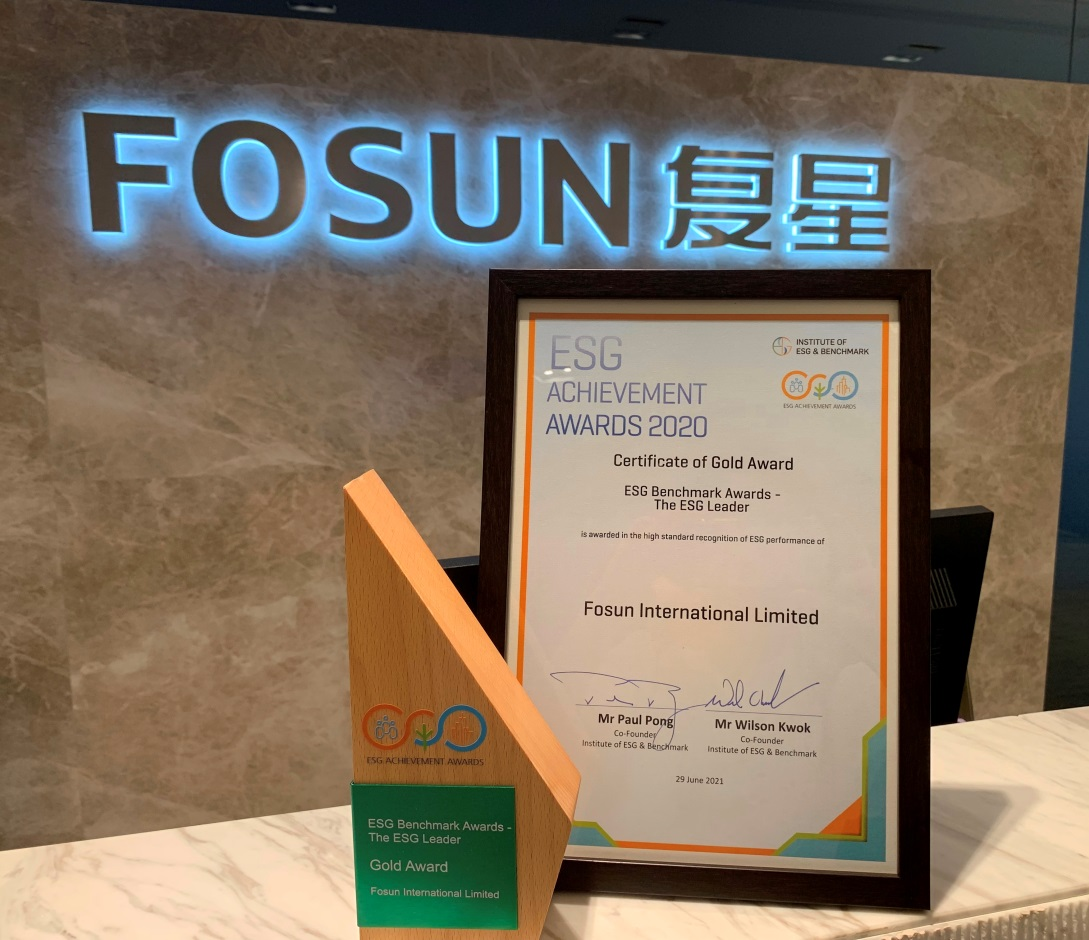 (29. Juni 2021, Hongkong) Das Institute of ESG & Benchmark (IESGB) veranstaltete im Hong Kong Productivity Council (HKPC) die feierliche Verleihung der Environmental, Social , and Governance (ESG) Achievement Awards 2020. Fosun International wurde mit dem „ESG Benchmark Awards - The ESG Leader“ Gold Award ausgezeichnet in Anerkennung seiner Bemühungen und herausragenden Leistungen in den Bereichen Umweltschutz, soziale Verantwortung und Corporate Governance.