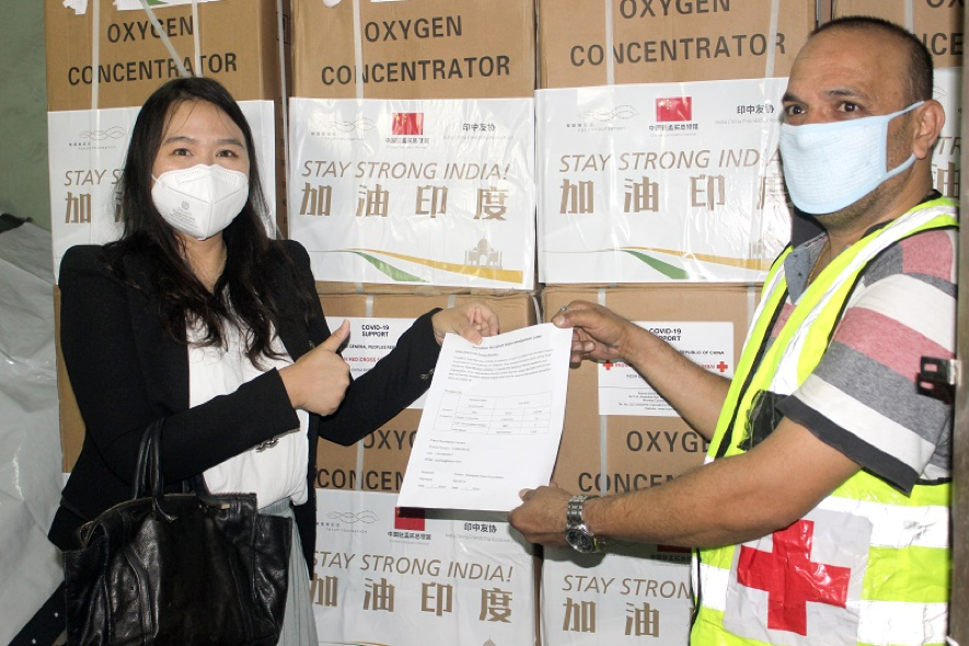 l'Inde totalisant 135 concentrateurs d'oxygène, 5 respirateurs et 3,300 masques