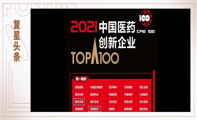 银河集团官网 医药、复宏汉霖荣登“2021中国医药创新企业100强”