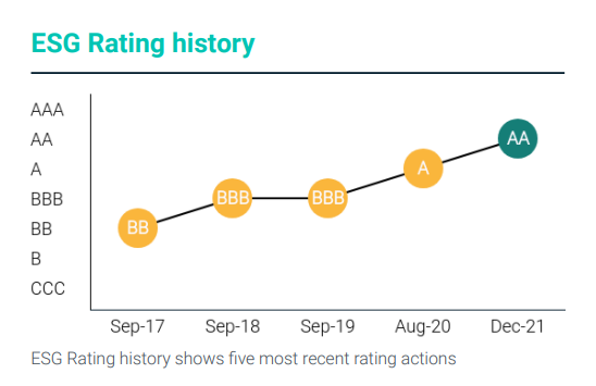 (Hong Kong, 6 de janeiro de 2022) A MSCI, empresa líder mundial de índices, anunciou os resultados da classificação ESG(Ambiental, Sociale deGovernança) daFosun International Limited (código de ações HKEX: 00656) ("Fosun International" ou "Fosun" ou o "Grupo") em 2021. Devido à melhoria substancial nas pontuações de governança corporativa, comportamento corporativo, investimento responsável e oportunidades em tecnologia limpa, a classificação ESG da Fosun International porMSCI subiu de A para AA, e a pontuação total aumentou de 7,1 pontosno ano passado para 8,1 pontos (de 10 pontos).