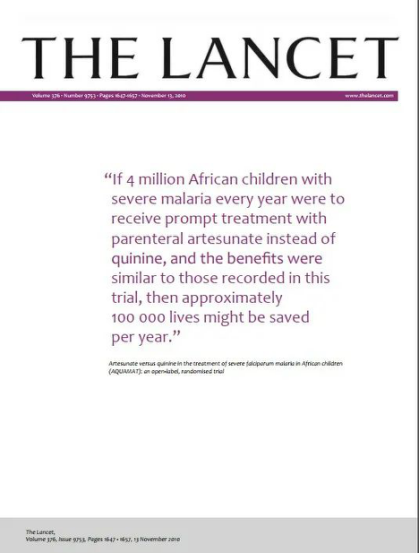 Foto3: No final de 2010, foi publicado um artigona capado Lancet sobre os resultados de um ensaio clínico internacional sobre Artesun® (artesunato para injeção) da Fosun Pharma