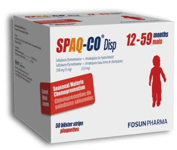 Do tratamento à prevenção, a Fosun Pharma continua a fornecer mais soluções de prevenção e tratamento para pacientes com malária, especialmente crianças. Em agosto de 2018, o SPAQ-CO® Disp da Fosun Pharma (co-embalados comprimidos dispersíveis de sulfadoxina-pirimetamina e comprimidos dispersíveis de amodiaquina), indicado para a prevenção da malária em crianças, foi pré-qualificado pela OMS(WHO-PQ). Até o final de 2021, cerca de 175 milhões de criançasnos países africanos com alta transmissão da malária tinham beneficiado do "Programa Sazonal de Quimioprevenção da Malária", para o qual o SPAQ-CO® Disp é usado como medicamento principal. O SPAQ-CO® Disp reduziu efetivamente a morbidade da malária em crianças menores de cinco anos de idaddena África.