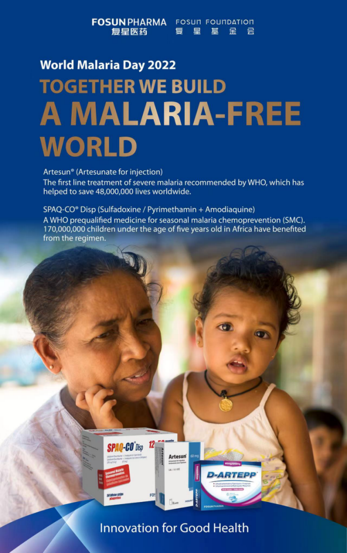 A luta contra a malária sempre foi uma das principais prioridades da assistência médica da China à África. Desde 2006, a Fosun Pharma tem participado ativamente do projeto antimaláriada Assistência do governo chinês na África. A empresa também realizou várias atividades de bem-estar público e cooperação internacional em pesquisa de malária para ajudar a melhorar a capacidade local de controle da malária na África. A Fosun Pharma tem sido um fornecedor principal de medicamentos antimaláricos para o Fundo Global, UNICEF, OMS e centros nacionais de aquisição de medicamentos na África.